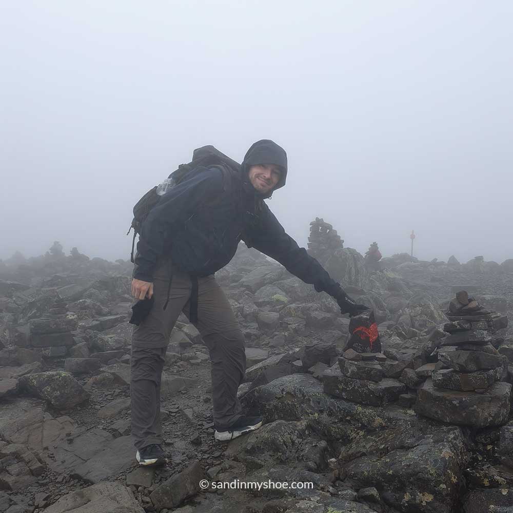 Reaching the top, despite the heavy mist and wind, felt incredible. After cycling 1,500 kilometers and hiking 29 kilometers, I had achieved my goal. Surprisingly, I felt okay physically, though the descent proved far more challenging.
