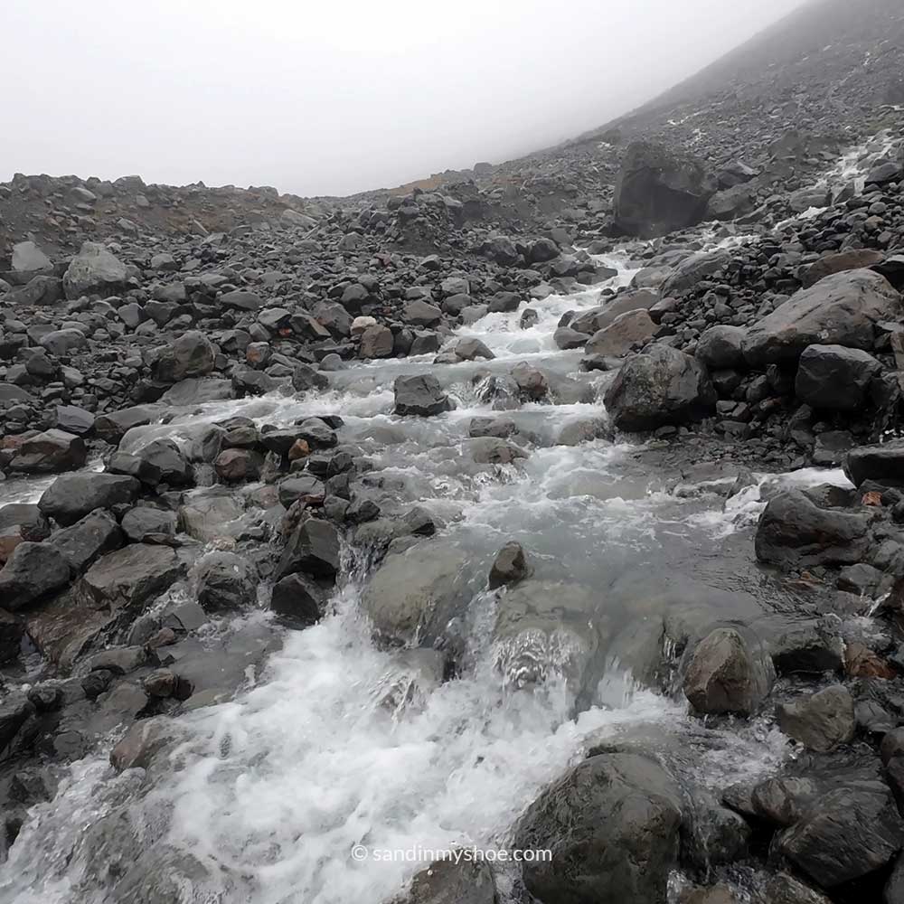 My pack was light — just lunch, snacks, rainwear, ice shoes, and two liters of water. The last stop to refill water was at a bridge four kilometer into the hike; after that, I’d need to melt snow from the top of the mountain, but it wasn’t needed.
