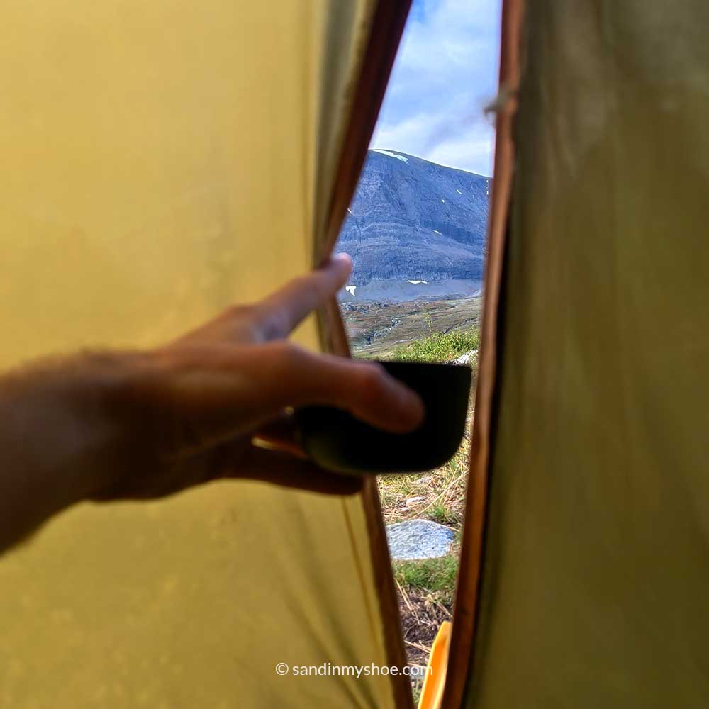 The sun warmed my tent as I slowly woke and boiled water for coffee. I opened the tent slightly, taking in the majestic view while enjoying my cup. The weather was impeccable
