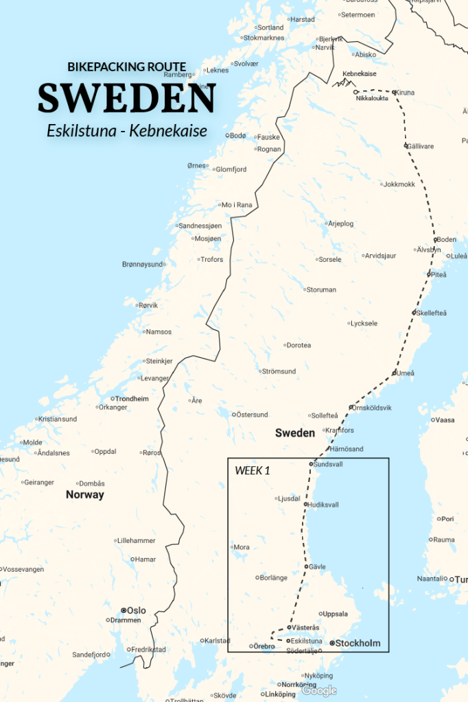 Part of the urgency came down to timing. I set out at the end of July, knowing that by mid-September climbing Kebnekaise would be far tougher, with colder, wetter weather rolling in. My plan was to reach the mountain at the beginning of September, which gave me just two weeks to prepare and three weeks to cycle 1,500 kilometers from Eskilstuna to Nikkaluokta. From there, it would be a trek to the mountain’s base, and finally, the push for the summit.