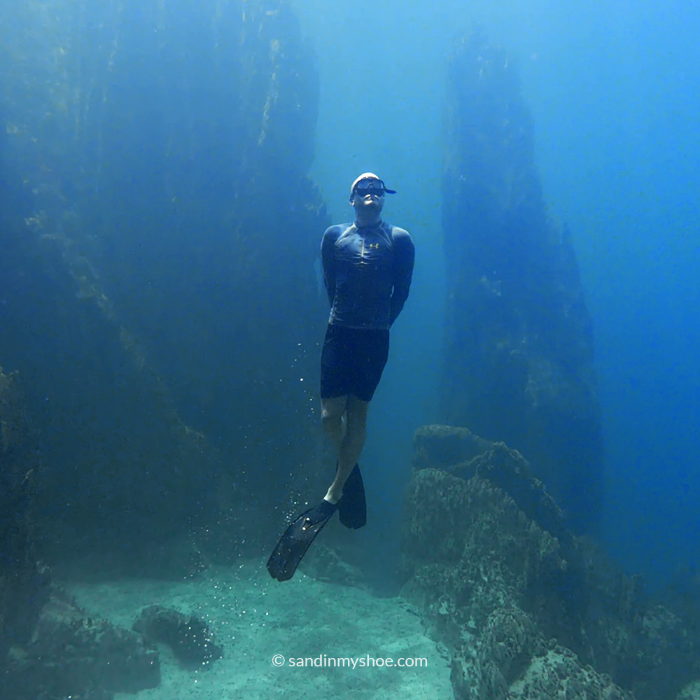 My longest breath‑hold was 2 minutes and 15 seconds while going down to roughly 12 meters, which left me satisfied. Beyond rope drills, we explored Barracuda Lake freely, diving around striking spots and even passing through an underwater tunnel 14 meters down that sent my adrenaline soaring.