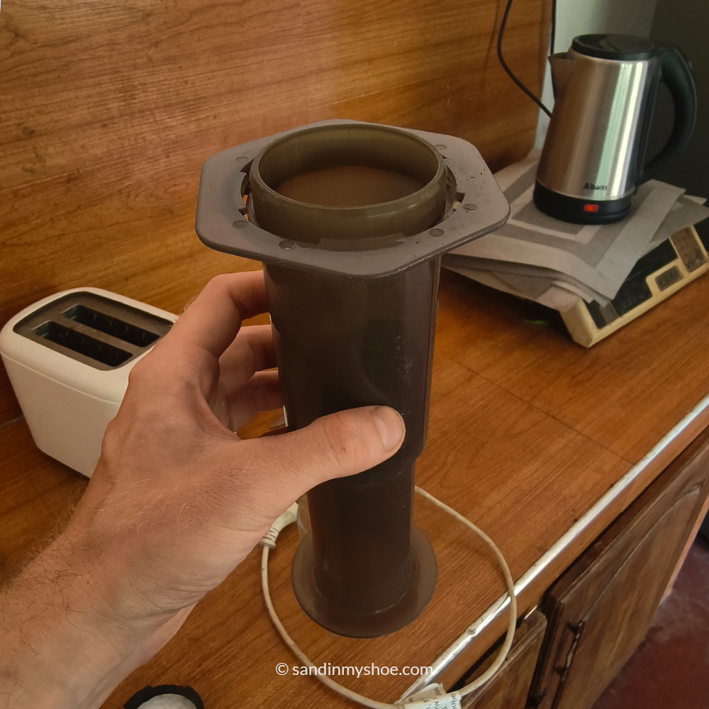So if you need a morning fix or two, and don’t want to constantly be on the lookout, bring your own. I usually packing an Aeropress: it’s light, cheap and makes a proper coffee. If you prefer something simpler, bring instant coffee.