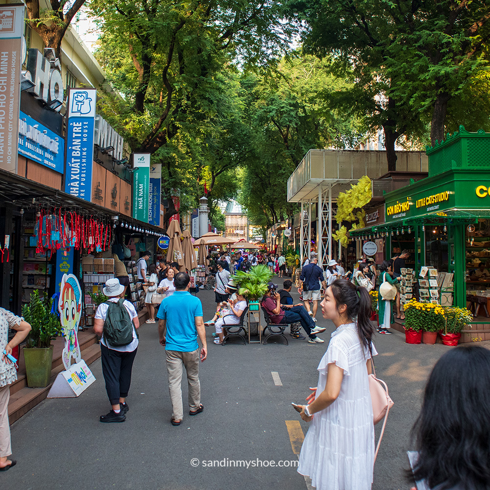 A couple of steps away is the Book street, which is a peaceful escape from the city’s noise. It’s a tree-lined stretch filled with small bookstores and shaded benches. The shops range from Vietnamese literature to English novels, travel books, and art prints, and the whole street has an easy, unhurried feel.