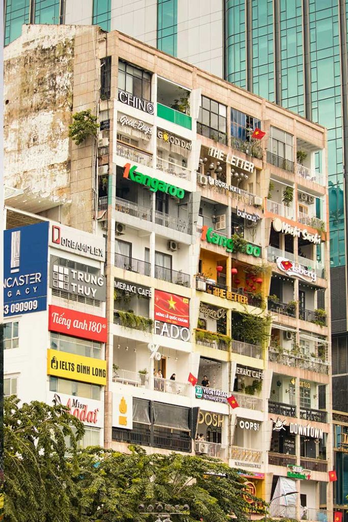 After you’ve rested for a while back your accommodation, the evening takes a stranger turn: a weird restaurant, a walking street with an option to visit an apartment building filled entirely with cafés, and finally ending the night on Ho Chi Minh City’s wildest street.